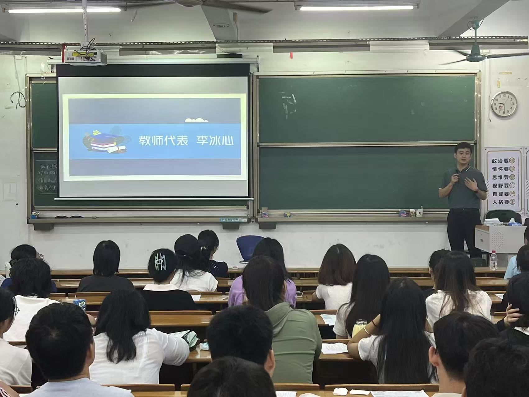 紧接着,李冰心作为教师代表进行发言,他提出研究生必须时刻将安全放在首位,确保学习与生活的顺利进行,同时要不断地深入学习专业知识,进行科学研究或实践探索,积极参与课程学习、课题研究及学术交流等活动,珍惜每一次交流的机会,勇于表达自己的观点和想法,不断提升自己的专业素养和综合能力,共同推动学术进步和个人成长。