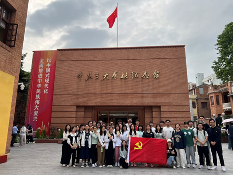 在中共三大会址纪念馆,研究生党员跟随讲解员进行参观学习,通过历史纪实及实物展示重温百年历史,从中感悟中国共产党人的初心使命。郑晓文带领同学们重温入党誓词,