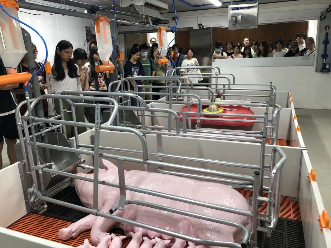 第二站同学们前往温氏集团下属的南牧装备科技有限公司,负责人就现代化养猪场的规划和设计、种猪和新生仔猪等不同生产阶段的养殖设备进行了详细的介绍,使同学们摒弃了对传统养猪场“脏、乱、差”的认知,对现代化和集约化养殖有了深刻的认识。